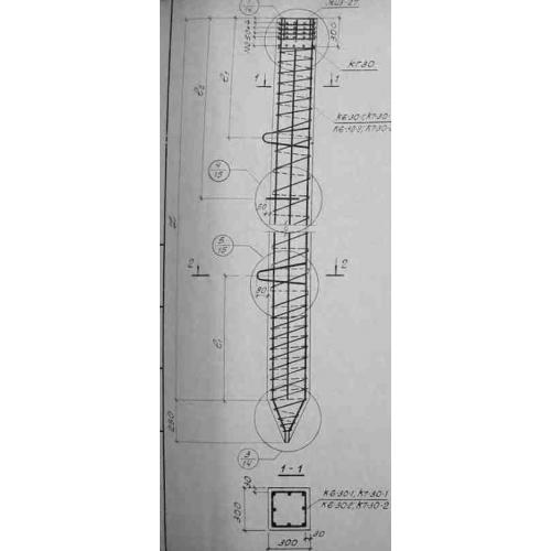 СО 6-30 Сваи с квадратным сечением в поперечном разрезе по серии 3.015-5.