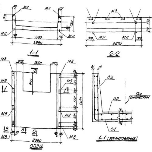 СПЛ 12 Панели стеновые лоткового типа по проекту ТП 905-7.