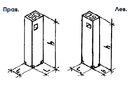 Маркировка  вентиляционных блоков представляет собой цифробуквенные набор, который включает в себя условные обозначение вида изделия, типоразмера и высоты в мм. Также в дополнительно в маркировке указывается тип исполнения изделия: «п» - правое, «л» - левое.
